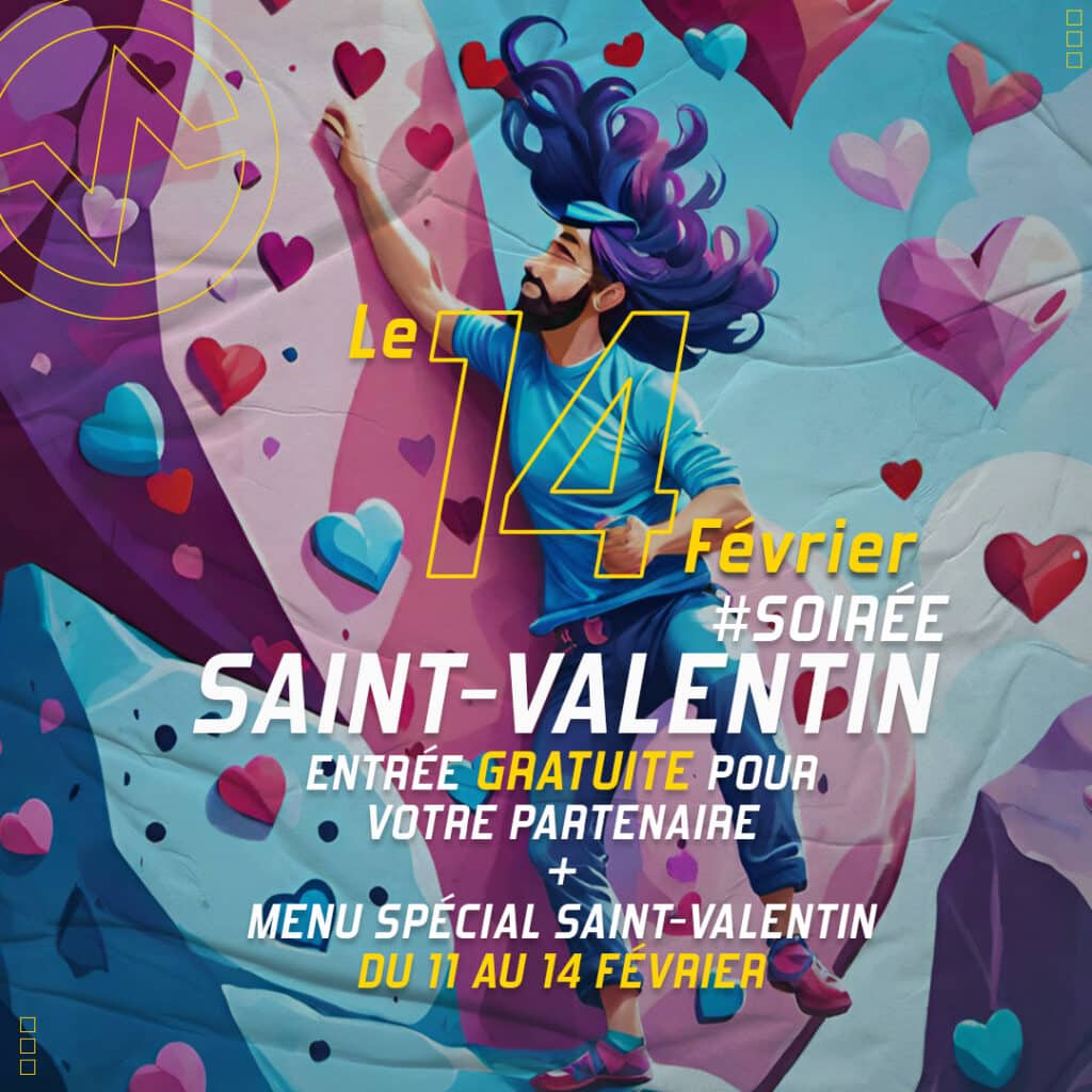 Pour cette Saint-Valentin, nous vous offrons un tarif spécial : votre partenaire grimpe gratuitement ! Rien de tel que de partager cette expérience inédite de l’escalade avec la personne que vous aimez. Quoi de plus romantique que de grimper ensemble, relever des défis et partager des moments de complicité dans un cadre unique ?
